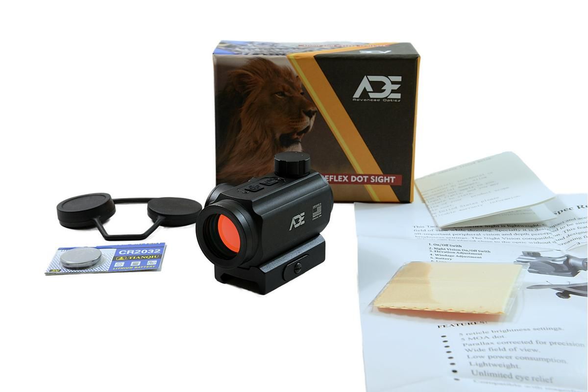 ADE RD4-005 1x20 Infrarot-Leuchtpunktvisier Gen. 3 mit 5 MOA-Punkt, Schnellwechselhalterung und Nachtsichtkompatibilität.