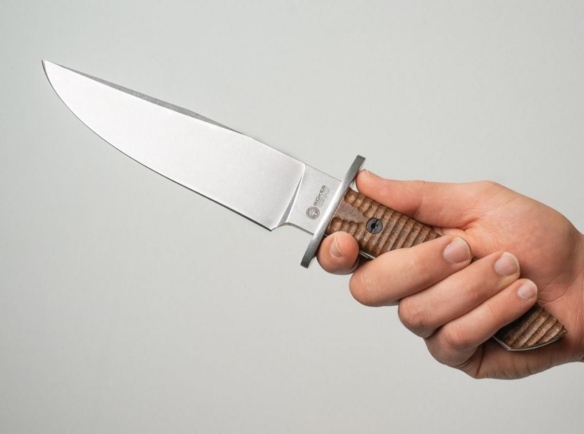 Die massive Bauweise in Kombination mit der klassischen Optik und dem hohen Gebrauchswert machen das Böker Arbolito Esculta, die kompaktere Version des El Gigante, zu einem ausgezeichneten Begleiter für Outdoor und Jagd. Die Griffschalen aus Guayacan-Ebenholz sind mit einer zusätzlichen Rillenstruktur versehen und so an Griffigkeit nur schwer zu überbieten. Die massive Klinge aus Böhler N695-Stahl läuft komplett durch den Griff und verjüngt sich zum Griffabschluss.