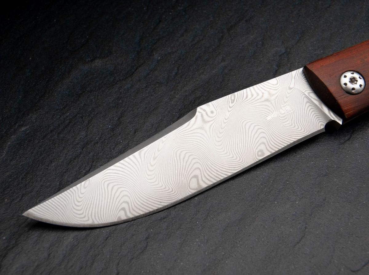 Für den überaus schlank gehaltenen Griff des Gentleman-Taschenmessers kommt eine Beschalung aus Cocoboloholz zum Einsatz, das mit seiner klassischen Maserung und dem rötlich warmen Farbton ein echter Klassiker unter den Griffhölzern ist. Großzügige Aussparungen in den Platinen senken das Gewicht und steigern den Tragekomfort.