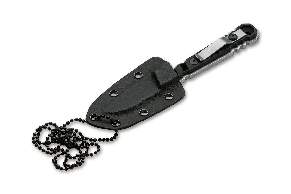 Dank des praktischen Stonewash-Clips kann das Messer auch problemlos am Taschensaum befestigt werden. Mit Kugelkette und passgenauer Kydex-Scheide.