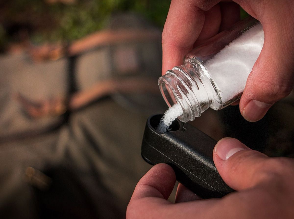 In ihm ist zusätzlich ein wiederbefüllbarer Salz- und Pfefferstreuer mit zwei Kammern untergebracht. Es ist komplett spülmaschinenfest und ideal geeignet für Camping, Angeln, Wandern, Picknicken, Reisen, das Büro oder ein Mittagessen unterwegs.