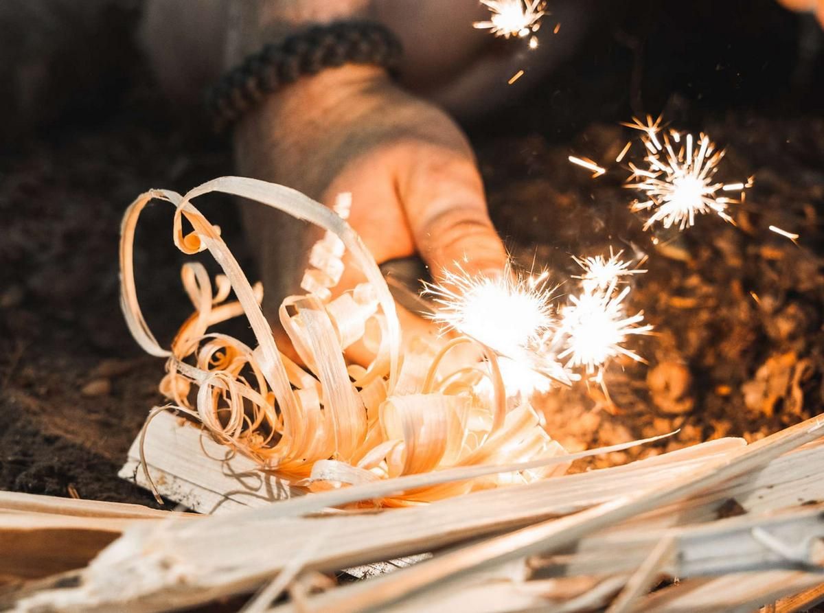- Beschädigung schützt, über eine Aufnahme für einen Feuerstahl verfügt und mit einem solchen ausgestattet ist