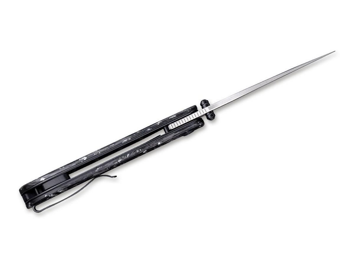 Das stylische Taschenmesser CIVIVI Imperium Carbonfibre Silver ist mit einer Nitro-V-Klinge ausgestattet, die ihre Schärfe lange behält. Die Klinge hat auf beiden Seiten einen Daumenknopf, der das Öffnen der Klinge erleichtert.