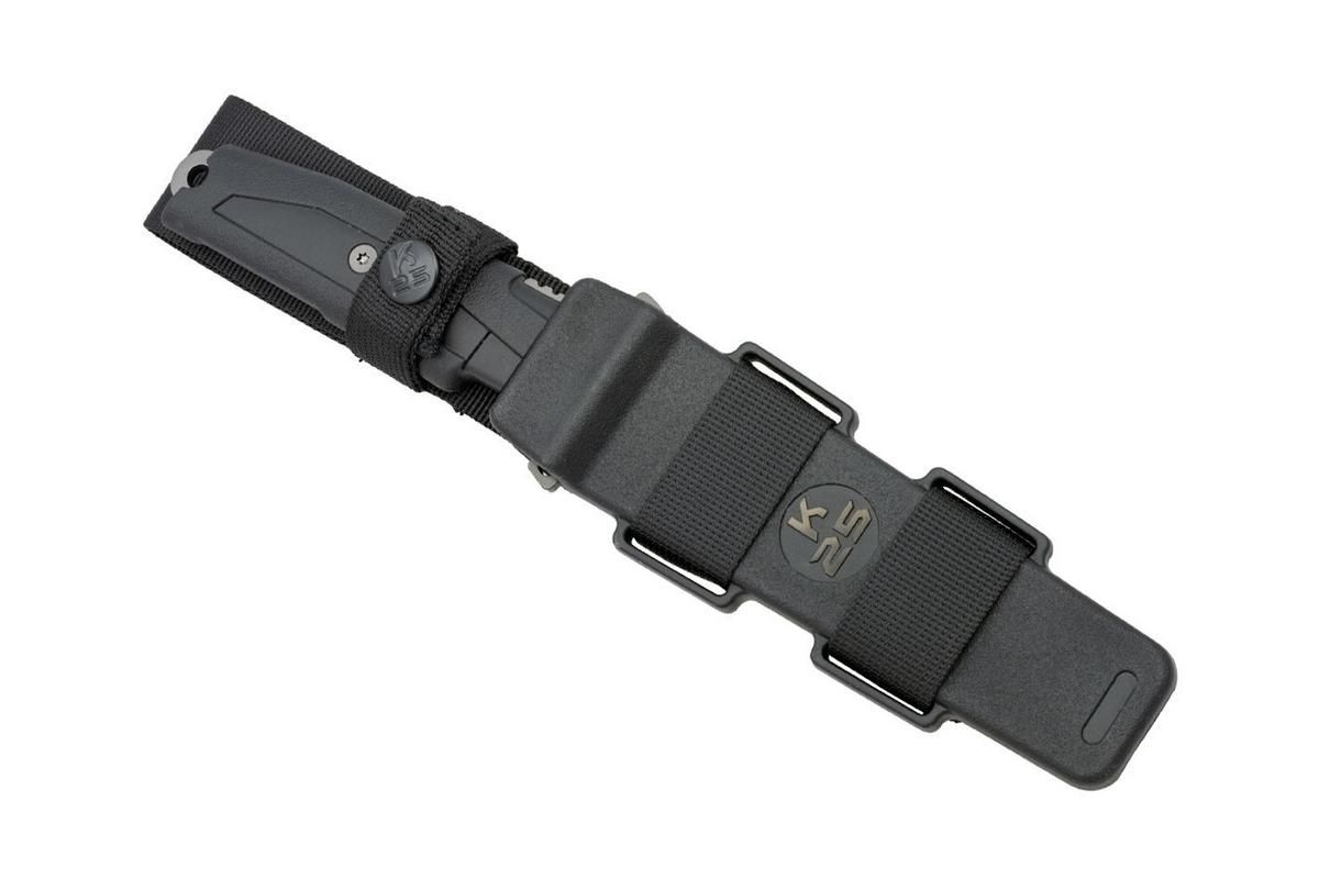 Das taktische Einsatzmesser UH-60 von K25 ist der ideale Wegbegleiter für anspruchsvolle Missionen und robuste Arbeiten. Die kräftige Klinge aus titanbeschichtetem 7Cr17MoV Edelstahl ist vielseitig einsetzbar und beidseitig mit einem kräftigen Handschutz versehen, der ein Abrutschen auf die Klinge verhindert.