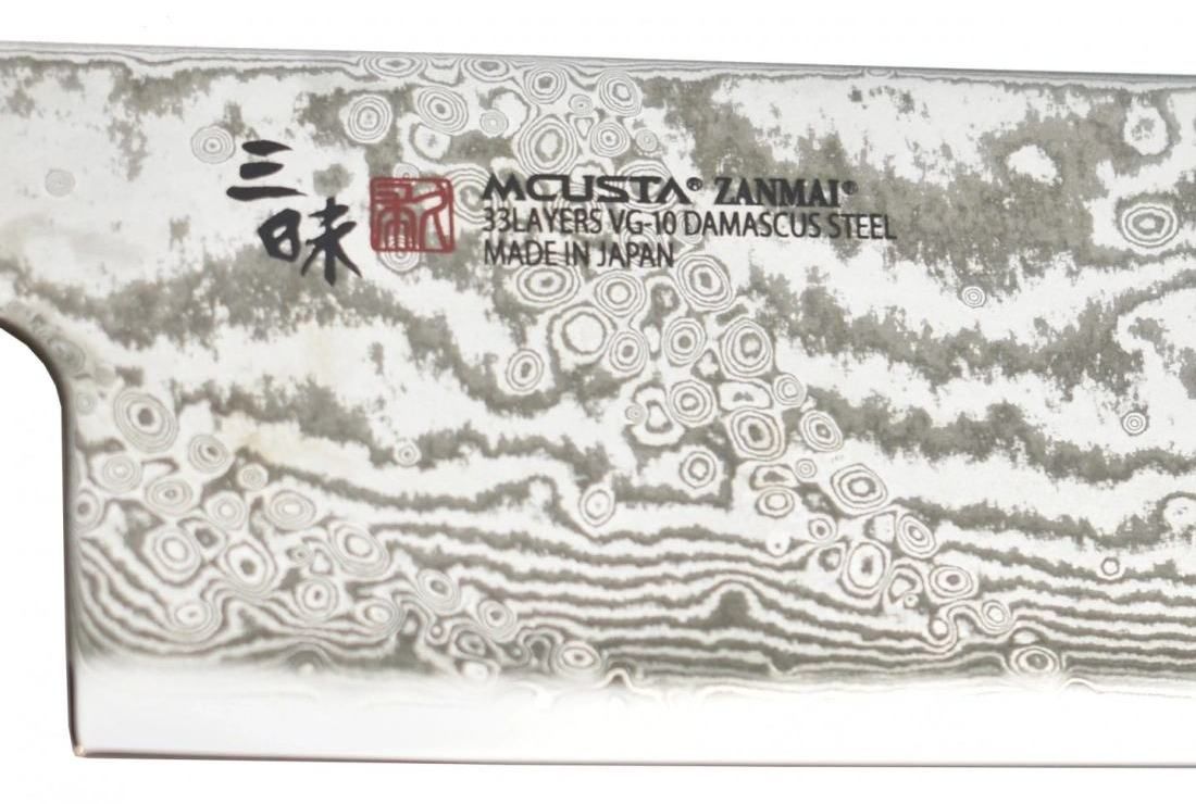 Klingenmaterial: VG10 Sanmai und Damaststahl 33 Lagen.