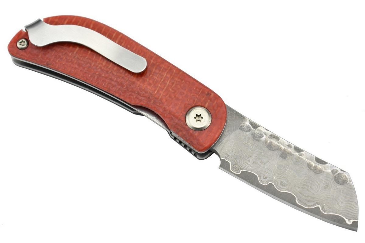 Mcusta MC-211D Petit kleines Taschenmesser aus Damast mit rote und schwarze Micarta Griffschalen.