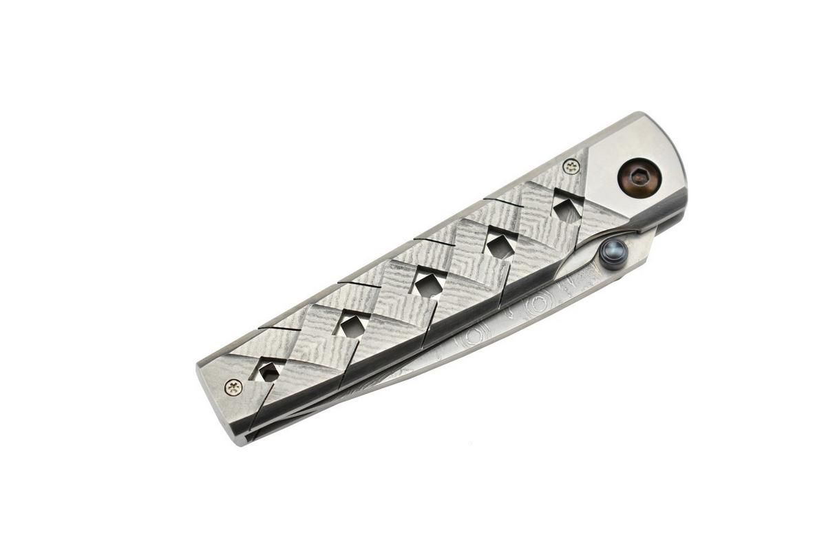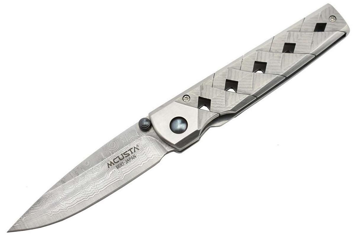 Mcusta wird in Seki, Japan, hergestellt und kombiniert moderne Technologie mit traditioneller japanischer Handwerkskunst, um handgefertigte Produktionsmesser in kundenspezifischer Qualität herzustellen. Dieses Messer ist geschlossen 3,56 Zoll lang und verfügt über eine 33-lagige Damast-Edelstahlklinge mit VG-10-Kern und einen Damastgriff mit Edelstahleinlagen. Wird mit eleganter japanischer Nishijin-Tasche geliefert.