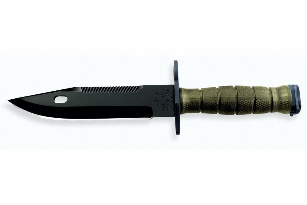 Das Modell M9 ist sowohl als Bayonet als auch als Feldmesser einzusetzen. Die Klinge wird aus einem speziellen Edelstahl gefertigt, trägt eine feine Säge im Klingenrücken und wird mit einer schwarzen Zink-Phosphat-Schicht geschützt. Mit einer Stärke von 6 mm hält das M9 stärksten Beanspruchungen stand.
