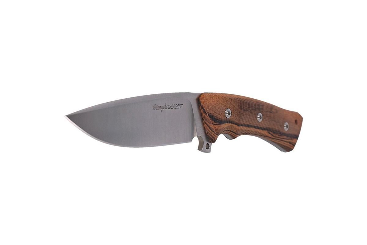 Das Gianghi von Fabrizio Silvestrelli ist ein überaus gelungener Entwurf, der sich nicht nur auf der Jagd, sondern auch im Alltag oder im Outdooreinsatz bestens bewährt. Die Klinge aus Böhler N690 besitzt einen kleinen, aber dennoch effektiven Fingerschutz, und die Lederscheide ist überaus hochwertig.