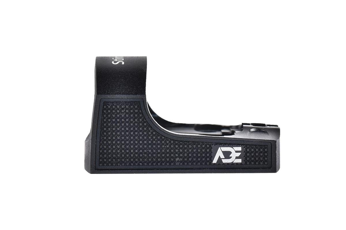 Ade Stingray is designed to be the smallest and lightest red dot to fit any gun mounting plate/slide/cut compatible with Trijicon RMR/SRO (both Type 1 and Type 2 RMR) and Holosun 407C/507C/508T red dots. The overall length is approximately 15-20% shorter than other large red dots on the market. The shorter design allows this sight to fit all optical cutouts/plates/adapters designed for RMR footprint. On some optics-compatible pistols with a larger optics cutout, there may be a gap between the rear of the Stingray and the rear iron sights of the pistol.