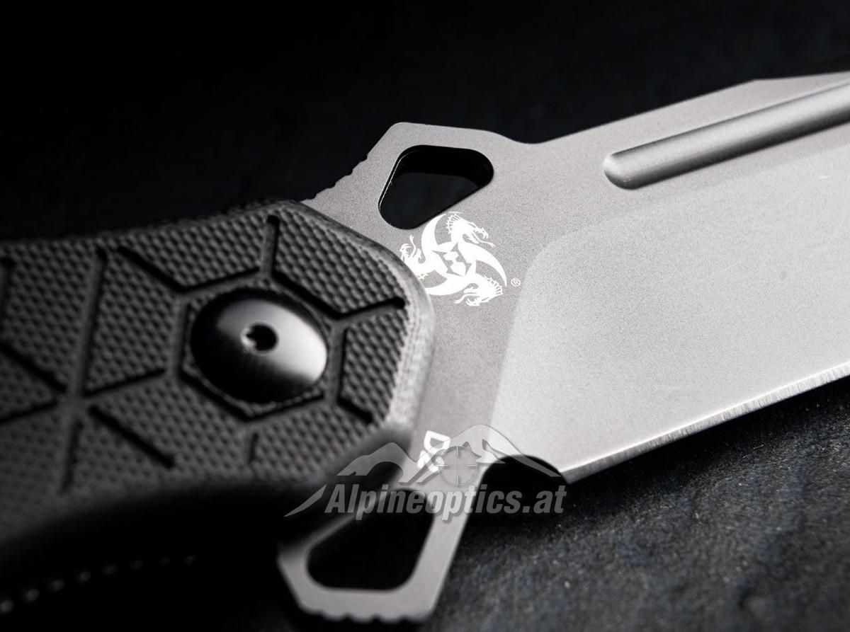 Yokai - ein robustes Einsatzmesser, das mit einer aggressiven Tantoklinge und einem rutschfesten Griff überzeugt. Die 9,5 cm lange, schwarz beschichtete Klinge ist aus D2-Stahl gefertigt. Sie wird mit Hilfe eines Flippers geöffnet und mit einem Linerlock verschlossen. Der Griff ist texturiert und mit einem Wabenmuster versehen und sitzt somit bombenfest in der Hand. Mit der 3,7 mm starken Tantoklinge können auch die härtesten Schneidarbeiten durchgeführt werden. Der rot eloxierte Aluminium Spacer sorgt für einen farblichen Akzent und ist mit einer Fangriemenöse versehen, um beispielsweise ein Lanyard anzubringen. Das Yokai lässt sich dank des Gürtelclips sicher mitführen, und der Glasbrecher rundet die Ausstattung des taktischen Einsatzmessers ab. Ein hochwertiges Nylon-Etui ist beigelegt.