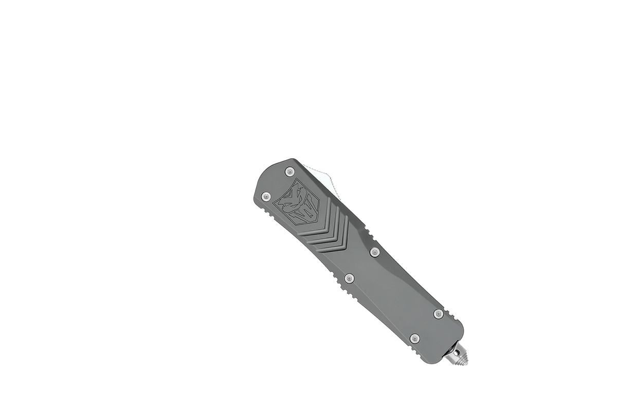 CobraTec Large FS-X gray automatic knife OTF with dagger blade and partially serrated edge