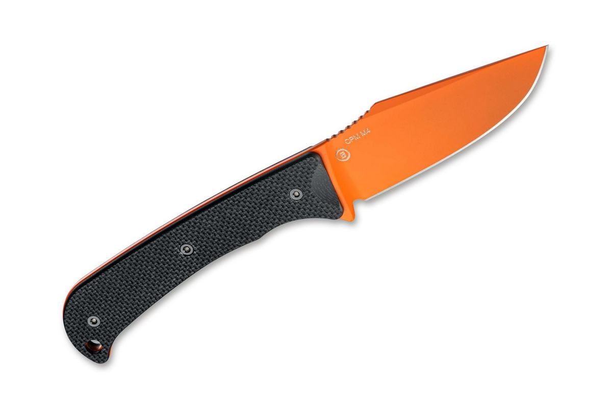 The orange Cerakote coating protects against scratches and gives the knife a unique look and easy to find in the event of loss. The removable grips made of G10, which are provided with a non slip texture, promise grip at all times.