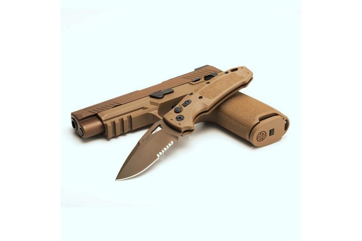 Sig Sauer K320A M17/M18 3.5" Droppoint Serrated Coyote Tan Automatikmesser.