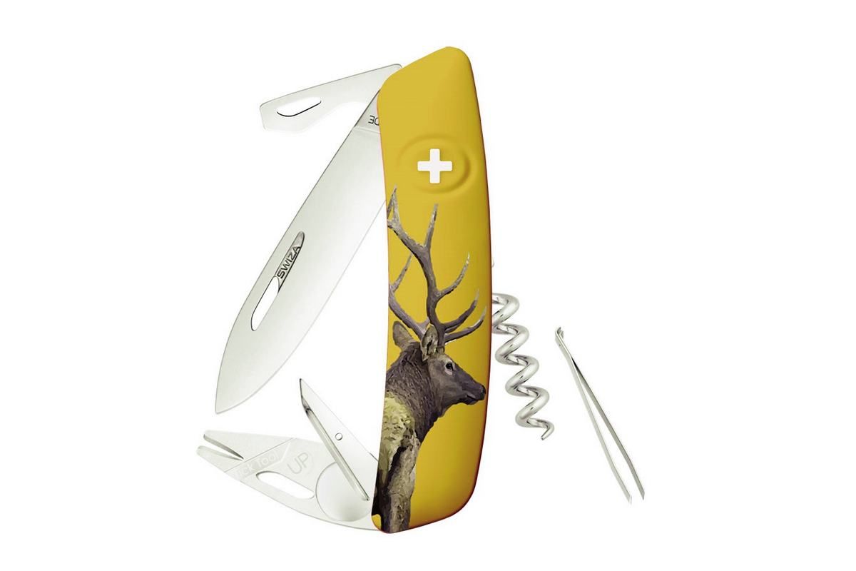 Swiza TT03 WILDLIFE Hirsch Orange multifunktionales Schweizer Messer mit Zeckenentferner.