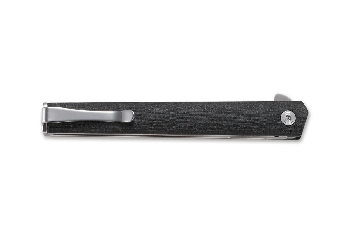 Das Messer kann nicht nur klassisch in der Hosentasche getragen werden, sondern durch sein geringes Gewicht auch wie ein Kugelschreiber in der Hemdtasche. Der stabile Griff aus leichtgewichtigem FRN ist mit einem umsetzbaren Clip (Tip-up/l-r) versehen.
