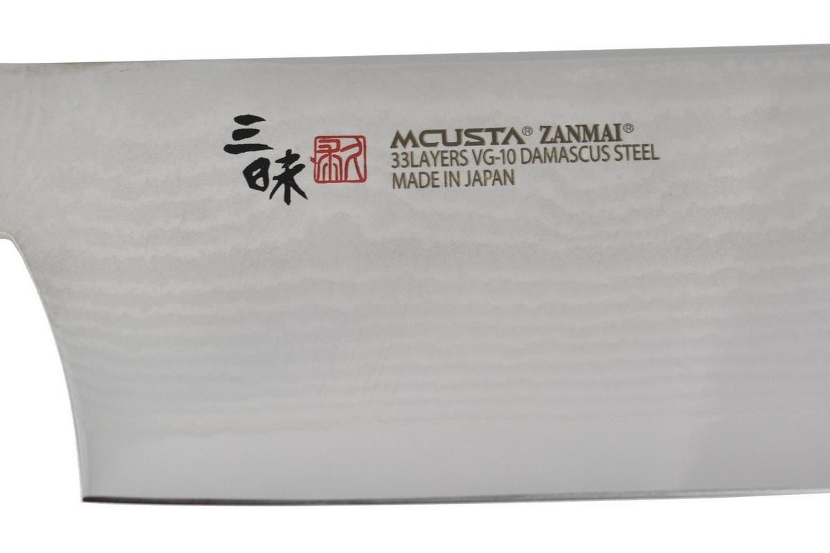 Die Klinge besteht aus 33-lagigem Damaststahl mit einem VG-10-Kern und hat ein charakteristisches Aussehen, das auf der ganzen Welt sehr beliebt ist. Der Griff ist aus schwarzem Pakkaholz.