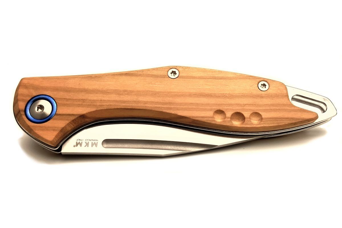 MKM Fara couteau de poche en bois d'olivier avec étui en cuir